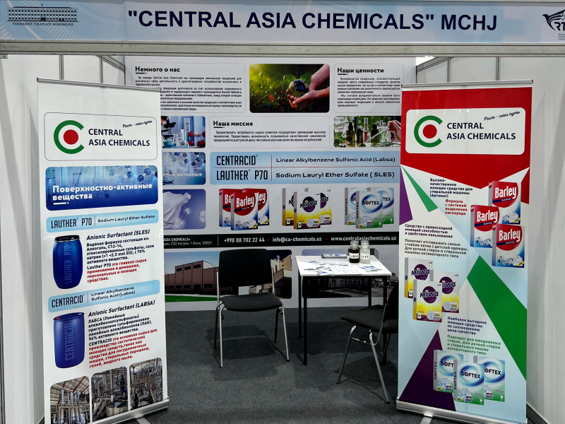 Yarmarkada bizning Central Asia Chemicals kompaniyamiz ishtirok etdi va yuqori sifatli SLES va LABSA namunalarini taqdim etdi.